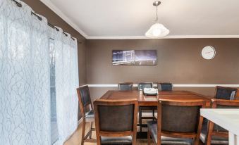 Many excellent features at this home including: cleanliness, lots of towels, shampoo provided, plenty of room to spread out, 3 nice bathrooms, plenty of hot water for all & decent water pressure, quiet location with woods in back, lots of beds, comfortable washer & dryer, lamps, extra blankets & pillows, self check in worked seamlessly & no key to have to keep track of, plenty of parking, kitchen well stocked.10 people coming & going & it worked out very well. Only about 15 minutes from Quantico Marine Base where we needed to go several times. I WOULD NOT HESITATE TO STAY THERE AGAIN. My only recommendations to the owners are to spruce up and repair the outside stairs leading to the front door for safety and more curb appeal, to repair the deck ballister (had a temp fix that didn't look great).The main living room couch is very comfortable but wood is broken at the bottom so people need to be cautious with that. Finally, it was a bit musty & humid in the house (more than outside). So we lowered the temp but then it was just cold and stayed humid. Finally figured out that the thermostat was continuously running the fan and it should have been on auto. Was set to go to 67 degrees at night and it got cold. We adjusted that & the humidity went away. Only mention in case this will help someone else to look for these things & adjust right when you get there. Owners kindly mailed a dress my niece left behind. Thank you for allowing us to use your home.Great for family gathering.