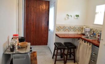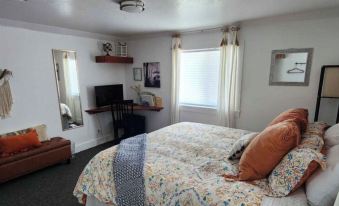 This studio apartment has the comfiest king-sized bed and a kitchenette that includes a toaster-oven, microwave, fridge/freezer combo, coffee maker including local organic coffee, and electric tea kettle with assorted teas. The bathroom is small but comfortable with a step-in shower. There is a small designated workspace and TV in the bedroom. Additional heating is provided by a space-heater to ensure your comfort and coziness.