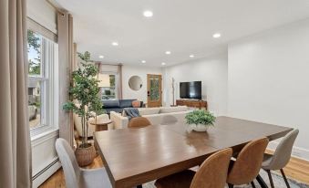 Welcome to Spring Avenue in Ardmore where you are close to so much on Philadelphia’s Main Line. This fully renovated home was built in 1900 and has four bedrooms and two and a half bathrooms. With three queen size beds and one full size bed, it comfortably sleeps 8 (10 total). There is also a queen size pull-out sofa in the living room if you need additional space. The kitchen is fully stocked (including essential seasonings and cooking oil) so you can feel at home preparing a meal or warming up leftovers from a nearby restaurant. Enjoy the comforts of wifi, central AC, a washer and dryer and smart TVs with access to Roku. Towels, sheets, blankets and extra pillows are also provided for guests. Please note that this home has three stories. The fourth bedroom and a full bathroom are on the third floor. The second floor bathroom has a soaking tub and requires one to step up into the tub. The third floor bathroom has a large walk-in shower. One parking space is available in the driveway with additional free parking on the street. For stays longer than 30 days, a monthly cleaning fee of $205 will be applied in addition to the standard cleaning fee of $205 upon check out.About pets:No pets allowed.About checkOut:Check out before 11:00 AM.About children:Children allowed: ages 0-17.About checkIn:Check in after 4:00 PM.About smoking:Smoking is not permitted.About minBookingAge:Minimum age to rent: 18.About events:No events allowed.