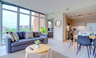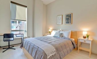 Располагайтесь с комфортом в этой квартире с кондиционированием. У вас будет кухня с холодильником и духовкой. У вас в номере будет телевизор Smart TV с диагональю 50 дюйм., на котором можно смотреть кабельное телевидение, а также бесплатный беспроводной доступ к интернету. В номере есть письменный стол и микроволновая печь.