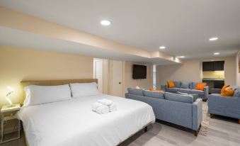 .The bathroom's odd floor design connects it to the only basement bedroom, but it also has a separate entrance that other basement occupants can use. Jack and Jill style, however it does compromise privacy because you have to make sure there are no visitors in the adjoining bedroom because there isn't a lock to keep them there.About pets:No pets allowed.About checkOut:Check out before 11:00 AM.About children:Children allowed: ages 0-17.About checkIn:Check in after 4:00 PM.About smoking:Smoking is not permitted.About minBookingAge:Minimum age to rent: 25.About events:No events allowed.