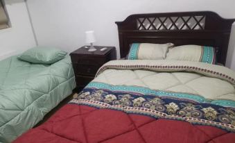 The apartment has a big living room filled with all the essentials, the kitchen is connected directly with the living room, the other side of the apartment has 2 bedrooms and a bathroom, one of the bedrooms has a single king size bed, the other room has a one double size bed and another single size bed.