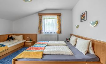 2-family house "Markus". 4 km from the centre of Zell am Ziller, 500 m from the centre of Aschau, 4.5 km from the centre of Kaltenbach, in a sunny position on a slope, along the wooded area. For shared use: property 500 m2 with trees, meadow. Garden furniture, barbecue. In the house: storage room for skis, ski boot dryer. Parking (for 2 cars) on the premises. Supermarket 500 m, bus stop "Aschau i.Z. Bahnhof" 850 m, railway station "Aschau i.Z. Bahnhof" 850 m, outdoor swimming pool 1 km, indoor swimming pool 2 km. Golf course (18 hole) 6 km, walking paths from the house, cycle lane 50 m, mountain railway 4.5 km, ski lift 4.5 km, slopes, ski bus stop 300 m, ski school 500 m, sled run 12 km, cross country ski track 500 m. Well-known ski regions can easily be reached: Zillertal-Arena 4.5 km, Hochzillertal-Kaltenbach. Please note: ski bus (free of charge). In case of good snow conditions, the house is accessible on skis. The owner lives in the same residence. "Markus", 4-room apartment 90 m2 on 1st floor. Bright, practical furnishings: 1 room with 1 bed and 1 double bed. Exit to the balcony. 1 double bedroom. Exit to the balcony. 1 room with 2 beds. Exit to the balcony. Kitchen-/living room (oven, dishwasher, 4 ceramic glass hob hotplates, toaster, kettle, electric coffee machine) with dining table and satellite TV. Bathroom, sep. WC. Oil heating. Carpet. 2 balconies. Balcony furniture. Beautiful view. Facilities: Internet (WiFi, free). Please note: non-smokers only. Smoke alarm, fire extinguisher. When there are less than the maximum number of guests staying at the property, not all of the bedrooms will be available for use.