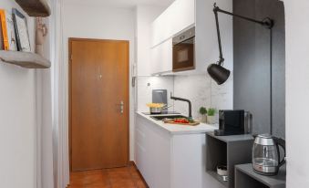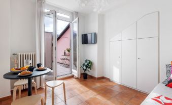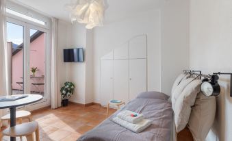 Ascona: Beautiful, comfortable apartment house "Appartament da Gina", 3 storeys. 4 apartments in the residence. In the resort, 100 m from the centre, in a central, busy position, 600 m from the lake, on a main road, south-east facing position. In the house: restaurant. Stepped path (15 steps) to the house. Public car park at 200 m, extra. Short-stay parking zone (fee). Shop 50 m, supermarket 150 m, restaurant, bar 5 m, bakery 50 m, café 50 m, pedestrian zone 100 m, bicycle rental 100 m, pub garden 5 m, 1 minute walk to the centre, bus stop "Ascona, Baraggie Linie 1" 50 m, railway station "Locarno Stazione" 3.5 km, outdoor swimming pool 1.7 km, lake Lago Maggiore 600 m. Sports harbour 2.4 km, marina 2.4 km, golf course (18 hole) 1.7 km, sailing school 2.4 km, indoor tennis centre 2 km, minigolf 650 m, walking paths from the house 250 m, cycle lane 500 m, children's playground 500 m. Nearby attractions: Monte Verità, Lungo Lago Ascona, Piazza G.Motta, Mercato Ascona (Die.), Casa del Te, Collegio Pontificio Papio, Chiesa dei Santi Pietro e Paolo, Ascona Jazz, Moon & Stars, Filmfestival, Festival der Strassenkünstler. Well-known lakes can easily be reached: Lago Maggiore 600 m. Hiking paths: Cardada, Monte Verità, Valle Maggia, Centovalli, Valle Verzasca. Please note: no lift. The owner does not accept any youth groups. Loading and unloading of baggage is possible at the holiday house. Additional accommodations can be booked. Property ref. CH6612.180.1-4 is situated on the same property. All houses/apartments are individually designed/furnished. Interhome guests benefit from special offers in the well-known restaurant da Gina / Ascona, which is located in the same building. "Da Gina Young Ascona", 1-room apartment 18 m2 on 1st floor. Object suitable for 2 adults. Bright in 2024, modern and cosy furnishings: open, Studio with 2 beds (90 cm, length 200 cm), flat screen. Exit to the terrace. Open kitchen (2 induction hot plates, toaster, kettle, electric coffee machine, Capsules for coffee machine (Nespresso (extra)) extra, combination microwave). Shower/WC. Natural stone floors. Small terrace 6 m2, south facing position and, east facing position. Terrace furniture. View of the mountains and the resort. Facilities: iron, hair dryer. Internet (WiFi, free). Please note: non-smokers only. Maximum 1 pet/ dog allowed. No lift. NL-00008786