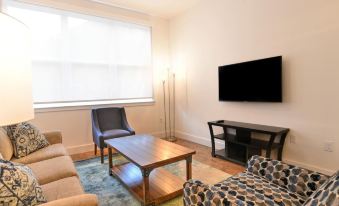 1 king/1 bath condo with a bonus queen sleeper. An open kitchen and living room, modern appliances, luxe bedding, and comfortable seating create a perfect respite for you and your group to relax after exploring downtown Asheville.