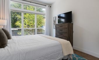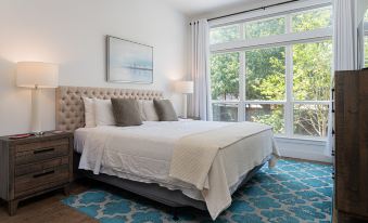 A king bedroom condo with a bonus queen sofa bed, this open floor plan unit has a balcony, gourmet kitchen with island, and a cozy, yet roomy layout that provides a welcoming and relaxing base for exploring downtown Asheville and the many attractions in Western North Carolina. Just around the corner is Asheville's main street, with Mast General Store, Curate restaurant, and many other local stores, galleries, music venues, and eateries. The Biltmore Estate is a short drive away, as are the River Arts District, West Asheville, and the Blue Ridge Parkway. Comfort AND convenience set this condo apart.