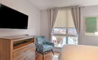 This two bed, two bath unit has all the premium amenities you can imagine, including an east facing balcony. An open floorplan, large kitchen island, premium appliances and large, spa-like bathrooms make this ideal for relaxing and regenerating after spending the day exploring downtown Asheville. The condo is within two blocks of restaurants, live music, art galleries, and shops. A queen sofa bed gives you extra sleeping options, too. There is ONE dedicated parking spot for this condo; any additional vehicles must park elsewhere. We recommend midsize or smaller vehicles only.
