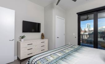 Stunning newer condo in downtown Asheville. This unit has 1 Main Bedroom and a Murphy Bed with balcony that opens from the bedroom and runs the entire length of the condo. Enjoy city views by the firepit. Located on Biltmore Ave in downtown you are central to all that Asheville has to offer. Also, just a short drive to the Biltmore Estate or the Blue Ridge Parkway; the location is hard to beat. One parking space is available but the car can be no larger than a Tahoe type vehicle.