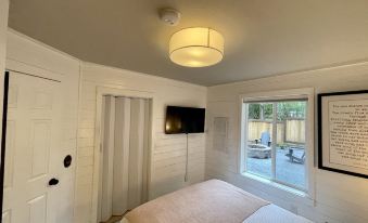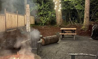 The beautiful, tree filled grounds include a fire pit, BBQ area, picnic table and 6 person hot tub. Please note that during fire season, the fire pit is not to be used.
