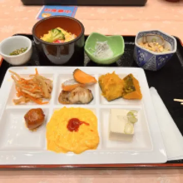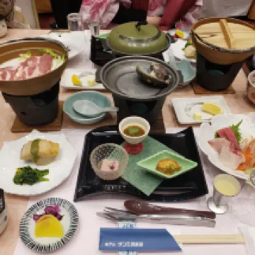 Расположение отеля просто фантастическое! Паромный терминал находится в 5 минутах ходьбы, что делает его удобным для посещения острова Хацусима. Горячие источники посредственные, а интерьер в целом выглядит устаревшим, особенно невероятно шумные туалеты. Однако завтрак и ужин, включённые в стоимость проживания, были просто фантастическими. Меню трёхдневного ужина отличалось большим разнообразием блюд, а также был шведский стол с мороженым из фруктов и молока. Я не смог осилить всё!