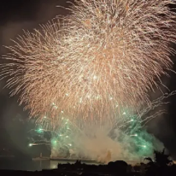 Мы смотрели фейерверк с крыши отеля. Судя по отзывам и картам, отель находится недалеко от места проведения фейерверка, но на самом деле он расположен в конце фейерверка, из-за чего вид был узким, а не широким, как спереди. Кроме громкого шума, ничего впечатляющего в нём не было. Более того, на террасе на крыше все сидели рядами на своих стульях, поэтому мы просто смотрели и фотографировали на телефоны. Хотите сфотографироваться с фейерверком? Если бы вы стояли, то закрыли бы вид с заднего ряда, что вызвало бы всеобщее возмущение.