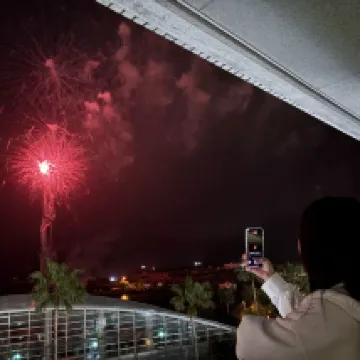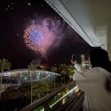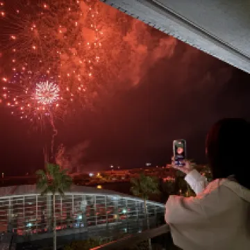 Я приехал сюда только посмотреть фейерверк, и расположение отличное. С балкона открывается вид на фейерверк, и после него не нужно беспокоиться о толпах.