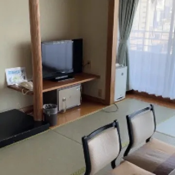 Я выбрал этот приморский отель, чтобы посмотреть фестиваль фейерверков в Атами. Отель выходит на фейерверк, пусть и не прямо, но всё же достаточно близко, чтобы насладиться поистине захватывающим видом. За несколько дней до заезда я написал в отель по электронной почте, чтобы попросить номер на верхнем этаже. За дополнительные 2200 иен с человека мне предоставили номер на 8-м этаже, самом верхнем. Это позволило мне смотреть фейерверк из своего номера, не протискиваясь сквозь толпы на пляже или крыше. Ужин состоял из восхитительного кайсэки, а завтрак «шведский стол» тоже был довольно неплохим. Однако номер был старым, а чистота — средней. На футоне было несколько волосков и пыли, что не помешало бы. Отель предлагает трансфер до вокзала, который отправляется дважды в 9:30 и 10:00 утра. Обязательно приходите в вестибюль за 5–10 минут до начала автобуса.