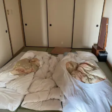 Номер был невероятно старым... старше, чем я мог себе представить... Чистота тоже была посредственной. На подушках были волосы, а на татами я заметил каких-то неизвестных насекомых. После двух ночей там всё чесалось. Это были летние каникулы и фестиваль фейерверков, а цена была больше 3700 за ночь. Оно того совершенно не стоило... Еда была посредственной, за одну ночь и два ужина. Горячие источники представляли собой один большой бассейн. Единственное, что понравилось — это обслуживание. И вид на фейерверк из нашего номера тоже был прекрасным.