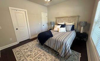 Welcome to this charming house in Athens ready to host large families coming to town for UGA football games and events alike. This superb property boasts 5 bedrooms, including 1 king bed and 4 queen beds. This home is perfect for larger groups of guests with the option for extra sleeping on a SUPER comfortable leather couch and 1 additional queen air mattress. 3 bathrooms fully equipped with all shower and bathing needs so everyone can freshen up comfortably. The house also features a screened in back porch to relax in the morning and evening, fenced in backyard for games, a grill, heating, a washing machine, AC, an iron, and WiFi for your convenience. Enjoy your time cheering on the DAWGS in Athens at our brilliant house.About pets:No pets allowed.About children:Children allowed: ages 0-17.About smoking:Smoking is not permitted.About events:No events allowed.