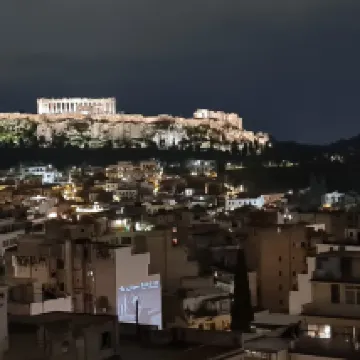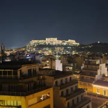 Девушка на стойке регистрации была очень гостеприимна и дружелюбна. Комната удобная и просторная, и мне нравится балкон. Также есть бар на крыше, где можно за 30 секунд взять греческое пиво и насладиться им, не выходя из балкона. Вид из бара на крыше фантастический, вы можете увидеть и Пафенон, и холмы Лиркабеттус. Wi-Fi работал стабильно, и вы также можете войти в Netflix! Настоятельно рекомендую.