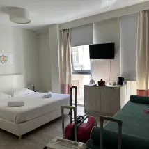 Прибыли в отель довольно поздно вечером, около 11 вечера. Регистрация прошла гладко. Но как одинокая путешественница я нашла расположение отеля совершенно небезопасным. Я читала об Омонии, но я думала, что находясь так близко к транспорту и метро, у меня не возникнет никаких проблем. К сожалению, это было не так, так как снаружи было много наркоманов, и это было довольно грубо и страшно для меня. Я забронировала на 4 ночи, но в первую ночь я не смогла поспать ни минуты. Это было невозможно из-за того, насколько шумным был бульвар. Это был ужасный опыт для меня. К сожалению, я уехала только после первой ночи. Завтрак был ничем особенным, за кофе нужно платить. Единственным бесплатным вариантом был пресный черный кофе, который был невкусным. Все виды выпечки и сэндвичей были довольно сухими. В целом, ничего не было свежеприготовленным. Наконец, хотя я и заплатил городской налог за все ночи, мне отказались вернуть часть суммы за те дни, когда я не буду пользоваться комнатой.