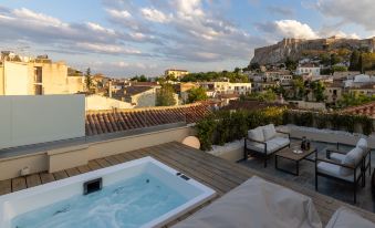 small boutique hotel in the heart of Plaka's ice cream, food, and tourist shops. A short walk to the heart of the city. Rooms are not suites but 30sm queen rooms that have been nicely decorated. Staff are all young and eager to help. Breakfast comes from outside supplier so is limited to pre ordering. Not a deluxe hotel; breakfast but depends on what you are accustomed to. Definitely not a 5 star hotel experience but with 5 star rates.