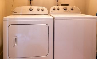 Relax in the master bedroom's king bed or unwind in the queen bed in the second bedroom. Enjoy the convenience of a shower in the master bathroom and a bathtub in the second bathroom. We provide fresh towels, toiletries, and a hairdryer for your comfort.