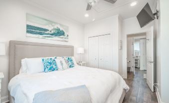 Second Floor: 3 bedrooms with 2 full bathrooms. 2 Queen Beds, and 2 Twin Beds. All bedrooms lead to screened porch or deck. All bedrooms have closets with built in closet storage, and new mounted Smart TV's. Washer and Dryer also on second floor.