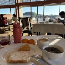Ресторан отеля, работающий по системе «шведский стол», расположен прямо на берегу озера, откуда открывается прекрасный вид. Завтрак в западном стиле, и хотя его разнообразие не сравнится с блюдами в дорогих отелях Китая, он довольно щедрый, учитывая цену.