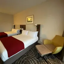 Хороший отель, расположенный очень близко к аэропорту, автомагистрали и множеству ресторанов и блюд на вынос. Огромная охраняемая парковка. Смежный номер был очень простым, и телевизор так и не включился. Позже вечером мы не могли спать из-за шума из соседнего номера. Но после разговора с администратором нам поменяли номер. Впечатления от работы на стойке регистрации остались приятные, но, поскольку в итоге проблема была решена, наш номер оказался тихим и уютным, с удобной кроватью. Выезд прошёл гладко и без проблем. В целом, отличный отель, идеальное расположение, тихий и семейный.