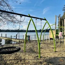Отель расположен прямо на берегу озера, а в нескольких минутах ходьбы находится детская площадка, идеально подходящая для отдыха и хорошего сна.