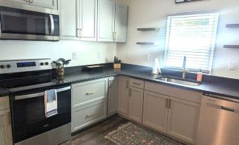 This newly renovated 2 bed/1 bath home has everything you need for a great place to relax while enjoying the city. Have some extra guests, enjoy our sofa bed. The back yard is large and gated, so perfect if you are traveling with your fur baby.