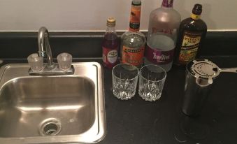 There was food, eggs, old whipping cream used cheese etc left in fridge. Dining room table looks nice, but beware of sitting on the chairs all have the potential to collapse. There were only 6 pillows for the 5 beds in the house. No handsoap, washcloths or hand towels in the bathroom. The master bathroom shower head was