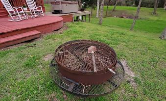 5 acre gated country home with fishing pond and Hot tub on deck. Beautifully landscaped grounds with large shade trees. Amenities include wrap around porch, outdoor fire pit, BBQ grills (gas grill and Charcoal/wood), kayaking, fishing, hiking, and other outdoor activities. 3 large bedrooms with well appointed furnishings. Television in Living area and Master Bedroom. High speed internet, ROKU, well equipped kitchen. Hot tub on deck for stargazing, very private location to get away from it all. Property borders large high fenced ranch to view exotics from the front porch.