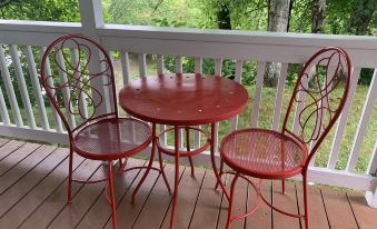 The Cottages are set up to be a place where you can just come Relax and Be at Peace. Sitting here on the Back porch is an adventure all to its own.
