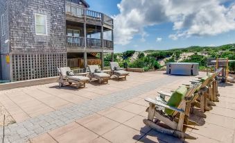 OCEANFRONT Avon - Prepare yourself for a truly BLISSful vacation at this oceanfront home in southern Avon with not only beautiful ocean views but also a private pool. A path to the beach welcomes you along with a large swimming pool, Tiki bar, and a hot tub to enhance your relaxation. There are other outside activities such as horseshoe pits, basketball hoop and swings too. Nearby is a game room featuring an air hockey table, large TV, stereo, and a full-size refrigerator, perfect for beach drinks or poolside beverages. This house is move in ready unlike most beach homes because the BEDS ARE MADE (not just linens included as are most beach homes in Avon). There is a refreshing large private outside shower near the pool and hot tub area as well as a fish or bathing suit cleaning sink area for your convenience. The gas grill (with gas provided) nearby the entertainment area will add to your vacation fun. The covered carport and storage area for beach and fishing gear provide space for your valuable vacation gear.