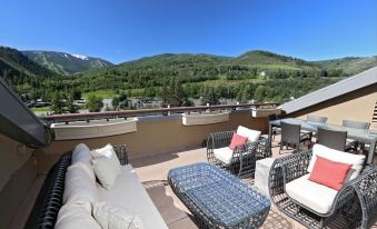 Best of the Best! Unique one-of-a-kind, luxury penthouse suite with spectacular panoramic mountain views, Gore Creek views. Open your door or crack your window to hear the rushing of Eagle River. Gourmet kitchen w/Wolf oven, SubZero refrigerator, leather sofas, amazing dining area, two very large decks/balconies, vaulted ceilings, upgrades galore.