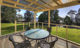 We (couple) stayed 4 Dec 2024 for one night. It is a great location on the water. We went for a long walk along the water's edge. Saw a few Pademelons, quite tame, must be familiar with people (not dogs!). We heard a few Kookaburras evening and morning. The cabin was good - parked the car alongside. Activities included Seahorse World in the harbour (we enjoyed this venue). Platypus World in the harbour (we missed this as it closed early). Supper was at the Chef's Catch for fresh fish and chips. We had an enjoyable day and night. Then on to Devonport and ferry back to Vic and home. Thank you. Yes, This Park and Beauty Point is well recommended.