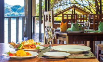 We had a great stay here. Our booking was through a third party private tour operator. The room was nice, a little small but with a good balcony overlooking the pool and the lake. The staff were very friendly and attentive. The meals were buffet style, we had one very windy day where the small heating flames couldn't keep up so the food was all very cold, but it was generally tasty and well cooked. Highly recommend the spicy arrack cocktail! We also went on the waterfall hike with village visit (shout out to Ushan our guide for this part), and the sunrise boat trip on the reservoir which were both excellent. We had booked the breakfast on the lake but the wind came in for three days and meant we couldn't do it, they were very apologetic and refunded the difference, although we still had the special breakfast in the lake view restaurant. Epic sunsets over the hills.