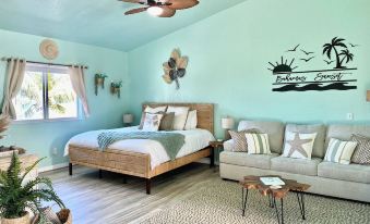 The open layout features a King Size Bed and a Queen Sleeper Sofa, perfect for couples or family getaways! Wake up to beautiful views of the Ocean from the bed!