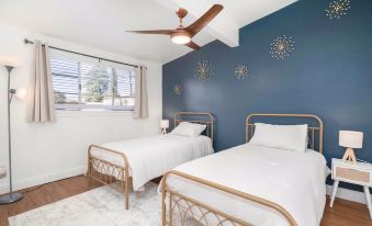 Enjoy our latest listing near Panorama Bluffs and Bakersfield College. A spacious 4-bedroom, 2-bathroom house is fully renovated and perfect for family, vacationers, business and health professionals alike. With five beds, floor mattress and sofa, the home can reasonably accommodate up to 9 guests. Fully furnished with modern amenities, including brand-new appliances such as 70" smart TV, central AC, washer, and dryer. A short drive to downtown and major hospitals and good access to Kern River Canyon.About pets:No pets allowed.About checkOut:Check out before 11:00 AM.About children:Children allowed: ages 0-17.About checkIn:Check in after 5:00 PM.About smoking:Smoking is not permitted.About minBookingAge:Minimum age to rent: 18.About events:No events allowed.