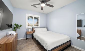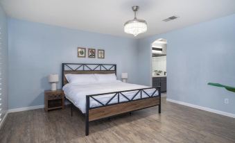 Escape to this welcoming house in picturesque Bakersfield. This house offers a serene atmosphere for guests to unwind and relax. The four bedrooms feature 1 king bed and 3 queen beds, ensuring a comfortable stay for everyone. With amenities like heating, iron, hair dryer, AC, washing machine, and high speed WiFi, you'll have everything you need at your fingertips. Whether you're exploring the city or simply enjoying the awesome ambiance of the house, we hope you enjoy what our place and Bakersfield has to offer.