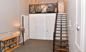 Мы забронировали номер - студию, так как он был единственный свободный. В номере двуспальная кроватью внизу и дополнительная кровать на 2 этаже под потолком, позиционировался он как для 3 человек (вероятно, если семья с ребенком), но по размеру кровати на втором этаже, его смело можно брать для четверых. Номер оказался даже лучше, чем был на фото. Свежий ремонт, идеально белое хлопковое постельное белье, белоснежные полотенца, уборка поверхностей и пола была не идеальной, но все же было очень чисто в номере. Напор воды в душе отличный, горячую воду ждать не приходилось. Предоставляются зубные щетки, гель для душа, шампунь, мыло. А так же 2 бутылки воды, кофе, чай, одноразовые тапочки. На полу - ковролин, пол не холодный. Огромные потолки, шторы блэкаут, можно хорошо выспаться, но, к сожалению, очень шумно с улицы, так как окна выходят на достаточно широкий, активный проспект, слышно шум машин. Если у вас слишком чуткий сон, лучше взять с собой беруши (а лучше, если отель будет предоставлять и их в номере, зная о проблеме с шумом). Матрас на кровати достаточно жесткий, что полезно, мне такой нравится, муж сказал, что для него жестковат.