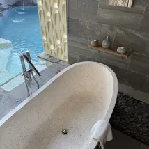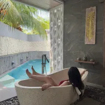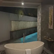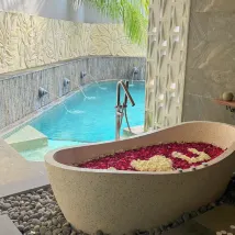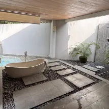 Потрясающее место, чтобы расслабиться и отдохнуть! Соотношение цены и качества за частный бассейн и ванну на открытом воздухе. Номер был очень большим и просторным. Гостеприимное обслуживание на ресепшене, обслуживание багги, еда и спа — все было хорошо и настоятельно рекомендуется!