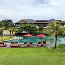 Мой любимый отель на Бали. Совсем рядом находятся рестораны на скалах и другие места. При регистрации заезда гостям предлагается небольшой напиток. Также очень выгодно заказать еду в номер. Самое главное — это бассейн и ванна. Здесь очень красиво фотографироваться. Настоятельно рекомендуется