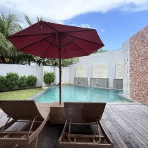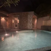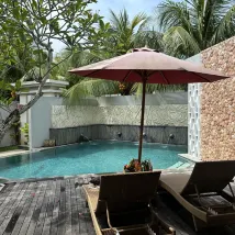 Номер большой и чистый. Ночью много гекконов, но это неизбежно для такого типа вилл. Бассейн подогревается, поэтому вам не будет холодно. Но большой бассейн снаружи довольно пустынен и не так интересен.