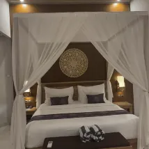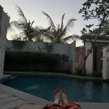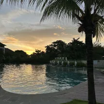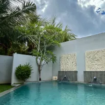 Это кайф🧡 Если вы ищете тишину и уединение в Джимбаран, то это отличный выбор. Персонал всегда здоровается, улыбается. Убираются на вилле 4 человека сразу, каждый день. Белье пастельное меняют, если попросите, а так просто заправляют. Хороший выбор завтраков.