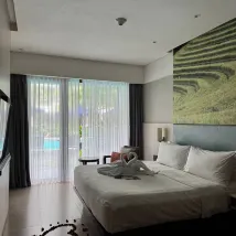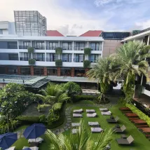 Примечание: по соседству идёт строительство (и, похоже, оно только началось). По моим наблюдениям, оно длится примерно с 8:30 до 18:00 (персонал отеля говорил, что работы начнутся в 9 или 10 утра, но индонезийские рабочие оказались даже более усердными, чем ожидалось). Если вы остановитесь на стороне, противоположной дороге, шум будет доноситься. У меня был номер с видом на бассейн, окна которого выходили во двор, но, поскольку он находится рядом со стройплощадкой, шум всё равно был слышен. Строительная площадка довольно обширная, поэтому шум, вероятно, будет ощущаться даже со стороны, противоположной улице.