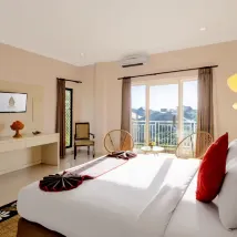 Персонал здесь просто ужасный. Ни привета, ни словечка, номер даже не принесли, а просто поменяли. Утром стучат в дверь, чтобы принести вам завтрак, который вы не заказывали, и отель с вами об этом не предупреждал. Предпочтения в питании тоже не обсуждаются... когда вы позже спускаетесь в ресторан и говорите, что пришли на вегетарианский завтрак, вам снова предлагают тот же поднос, что и у двери, с курицей сатай. Эти отельеры мало что понимают, но прекрасно знают, как отпугнуть гостей и нажить плохие отзывы. Очень жаль... мы больше не вернёмся, и я всем советую не пользоваться услугами плохого персонала и плохих отелей со странной политикой.