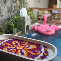Что действительно сделало наше пребывание замечательным, так это сюрприз в виде празднования дня рождения, организованный моим мужем с персоналом виллы. Они помогли ему спланировать красивое оформление, включая воздушные шары и изысканное цветочное оформление, покрывающее весь бассейн. Это был замечательный жест, который сделал мой день рождения по-настоящему незабываемым.
