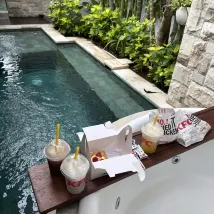 Отличный опыт! Прямо у входа в отель есть Starbucks, что очень порадует заядлых кофеманов. На такси Grab до торгового центра Куты и пляжа можно доехать всего за ~10-15 юаней. Персонал отеля очень приветливый и дружелюбный. До поездки читал в интернете, что на Бали легко подхватить кишечную инфекцию из-за воды. Привез с собой фильтр для душа, но, к моему удивлению, после двух дней использования картридж был абсолютно чистым. В бассейне вода с постоянной циркуляцией, абсолютно чистая. Этим я тоже очень доволен. Единственный минус – номер показался мне слишком маленьким и не совсем похожим на виллу, но это не критично. Я редко пишу отзывы, но этот отель действительно того стоит.