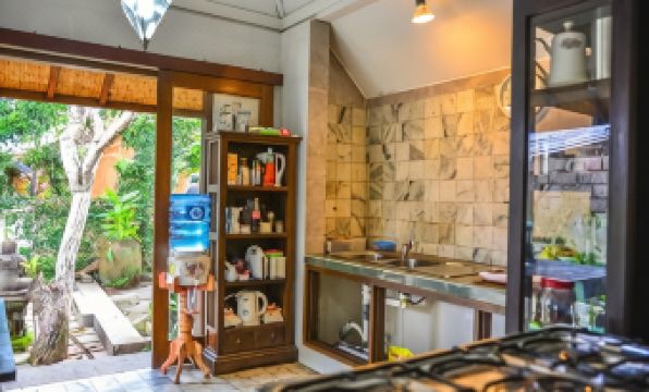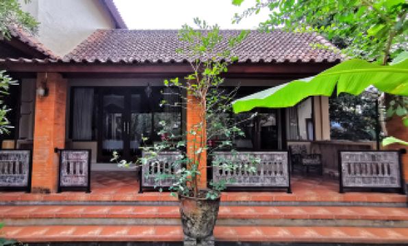 We have stayed here two weeks, and found it to be very comfortable and quiet. Great mattress, best-working toilet we have ever had in a hotel, well-working AC and fan, mosquito netting over the bed, small fridge, closet, large terrace and comfy sofa which overlooks a small garden with trees (pomelo, guava, mango). The hosts were very welcoming and caring. However, there were a few minor issues: the wash basin had only cold water, the shower really needs a make-over (a glass partition wall and door, more light), and there was no manual to the Smart-TV (I didn't use it at all, just couldn't manage it no matter what I tried). My husband loved having nasi for breakfast (extra spicy at his request), I had an veggie omelet a few times but there was too much oil in it to my liking, so bought yoghurt at the large Bintang supermarket (take a taxi) for breakfast. Laundry can be done for a good price, the hotel will take care of this for you. There was a coat stand on the terrace, but that didn't work very well for laundy I had done myself (wrong shape, and it was knocked over several times by the wind). We've sat on the terrace for hours: it's very shady and so not very hot. The walkway to the entrance/ex it was very good (unlike the rest of Ubud, which has horrible sidewalks). Nearby, we had dinner at Fair Warung Bale and coffee at Anomali - both are highly recommended. You will also find the small but lovely Luweng shop nearby (great for non-touristy souvenirs past the entrance), a branch of Periplus (books); there's an ATM nearby at a supermarket (there's two supermarkets next to each other, go to the one on the right). This small-scale hotel is highly recommended to those looking for tranquility and who don't mind not having a pool. However, we do not recommend Ubud: there's no public transportation and taxi drivers will not take you to any place they consider to be nearby, sidewalks are absolutely horrible, the worst we have ever seen.