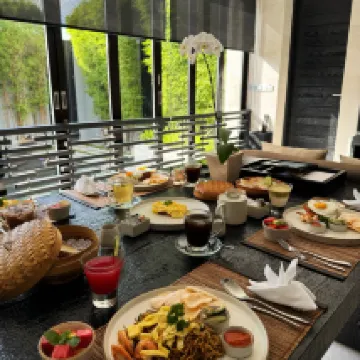 Я хотел бы особо поблагодарить Risky, Kiki и Heri за их превосходное обслуживание! Обслуживание на высшем уровне!! Они помогли организовать транспортное обслуживание в Семиньяке, помогли нам забронировать ресторан, приготовили нам завтрак и были нашим личным дворецким на нашей вилле. Их гостеприимство превосходное! Номер был чистым, а завтрак тоже был хорошим! Определенно вернусь, чтобы остановиться здесь снова! Настоятельно рекомендую!