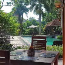 Красивая территория отеля, много зелени, пальм, бассейны. Довольно хорошие завтраки - рис, лапша, мясо, бекон, овощи, фрукты, хлопья,вкусная выпечка. Для завтрака отлично. По территории бегают семейства обезьян, живёшь как будто в центре заповедника, очень необычно и атмосферно. Рядом есть всё, магазины, кафе, но вместе с тем, в номере тихо. Воду, кофе, чай пополняли, полотенца меняли, вай-фай ловил в номере. Проживание в отеле нам понравилось, вернулись бы снова с удовольствием